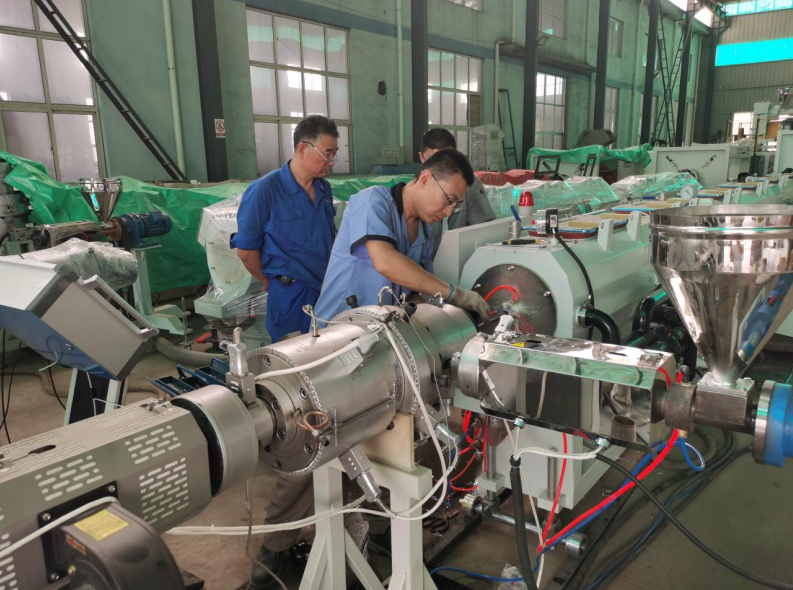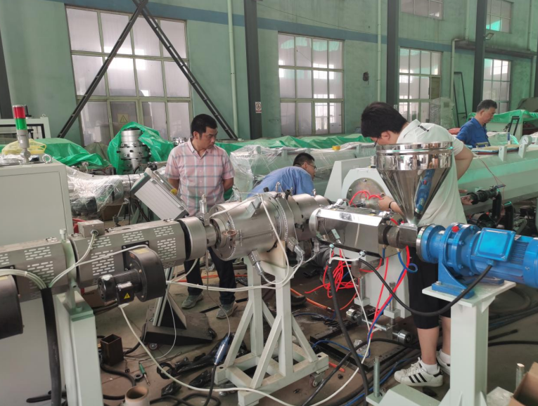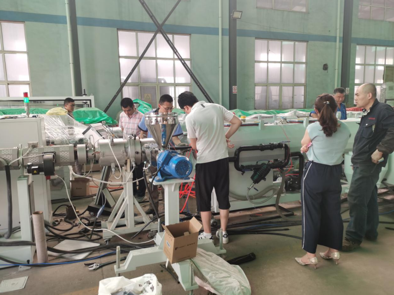 這條可用于PE管材生產線的設備應客戶要求正在試機;