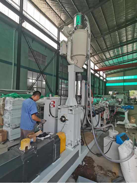 1.原料混合是將PVC穩(wěn)定劑、增塑劑、抗氧化劑等其它輔料按比例、PVC擠出機(jī)工藝先后加入高速混合機(jī)內(nèi)經(jīng)物料與機(jī)械自摩擦使物料升溫至設(shè)定工藝溫度然后經(jīng)冷混機(jī)將物料降至40-50度這樣就可以加入到擠出機(jī)的料斗。